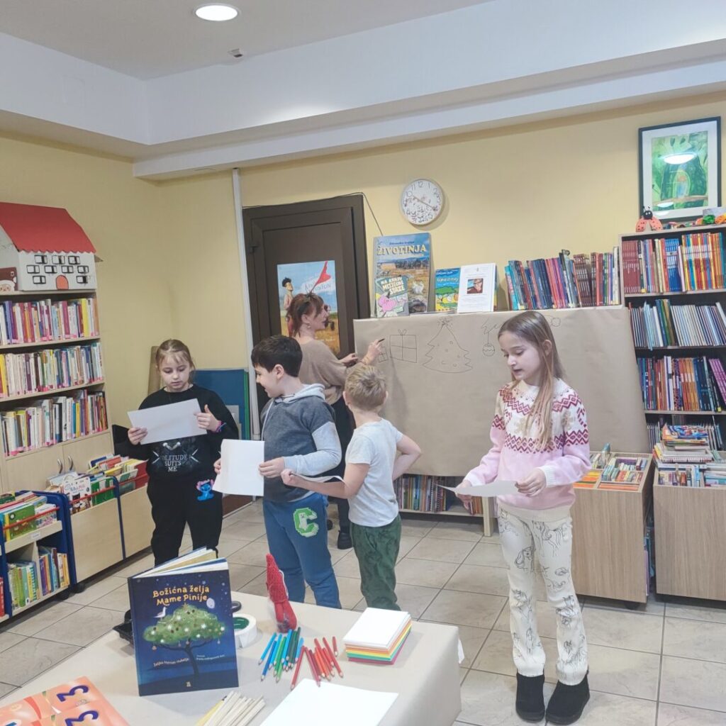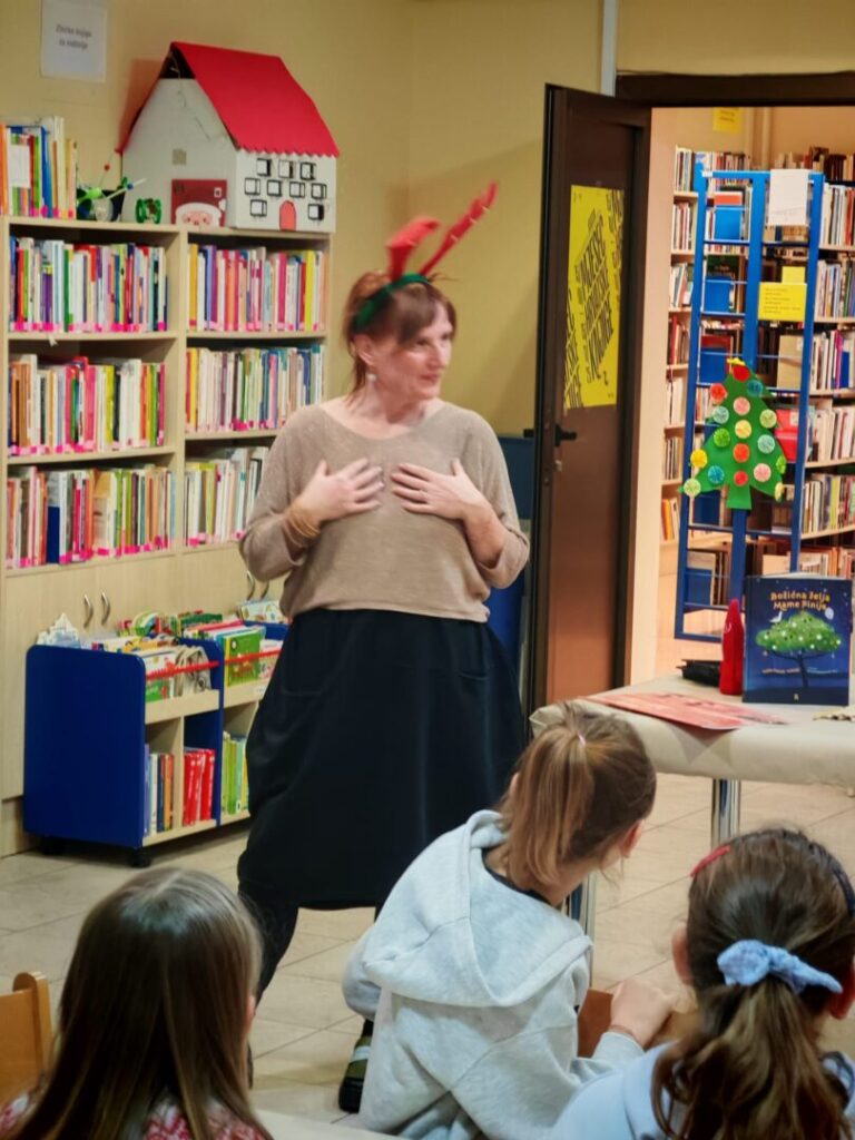 U ponedjeljak, 15. prosinca učenici 2. d razreda u pratnji učiteljice Kornelije Dančević i školske knjižničarke Željke Martan Buhin posjetili su Knjižnicu Sesvete. Voditeljica dječjeg odjela Tatjana Rozalija Ovčar naše učenike upoznala je sa svojom posebnom gošćom, ilustratoricom Brankom Hollingswoeth Nara. Ilustratorica je učenike upoznala sa slikovnicom Božićna želja mame Pinije koju je ilustrirala prema tekstu književnice Željke Horvat Vukelja. Gospođa Branka crtala je božićne ilustracije prema motivima koje su joj zadavali naši učenici. Budući da je tijekom mjeseca prosinca u Centru za kulturu Sesvete aktualna izložba ilustracija Priče za Božić, učenici su u pratnji gospođe Branke razgledali izložene ilustracije hrvatskih ilustratora slikovnica.