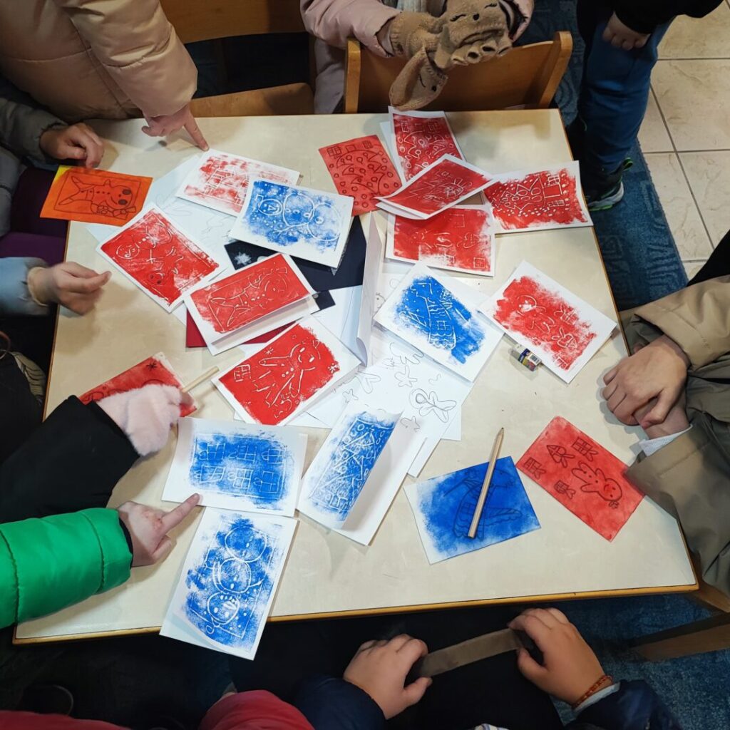 Kako učenici u ovo adventsko vrijeme kući ne bi otišli praznih ruku, uz pomoć i upute gospođe Branke, tehnikom otiska izradili su svoje božićne čestitke koje će pokloniti svojim dragim osobama.