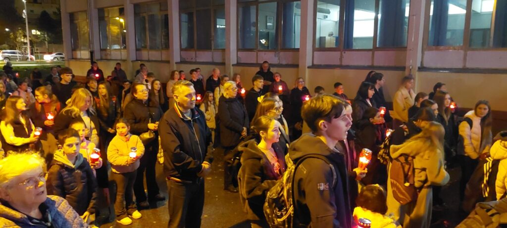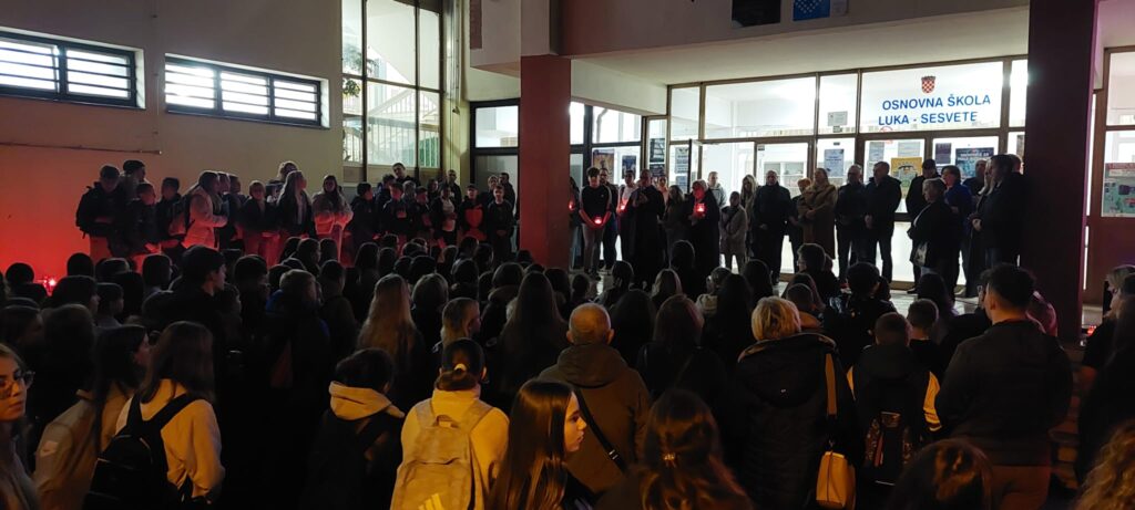 Dana 17. 11. 2025. ispred naše škole u 17:30 okupili su se učenici, djelatnici te brojni Sesvećani kako bi odali počast žrtvama Domovinskoga rata. Molitvu za žrtve Domovinskog rata predvodio je sesvetski kapelan vlč. Petar Tisaj. Zahvalnost poginulim hrvatskim braniteljima učenici su iskazali molitvom i paljenjem lampiona.