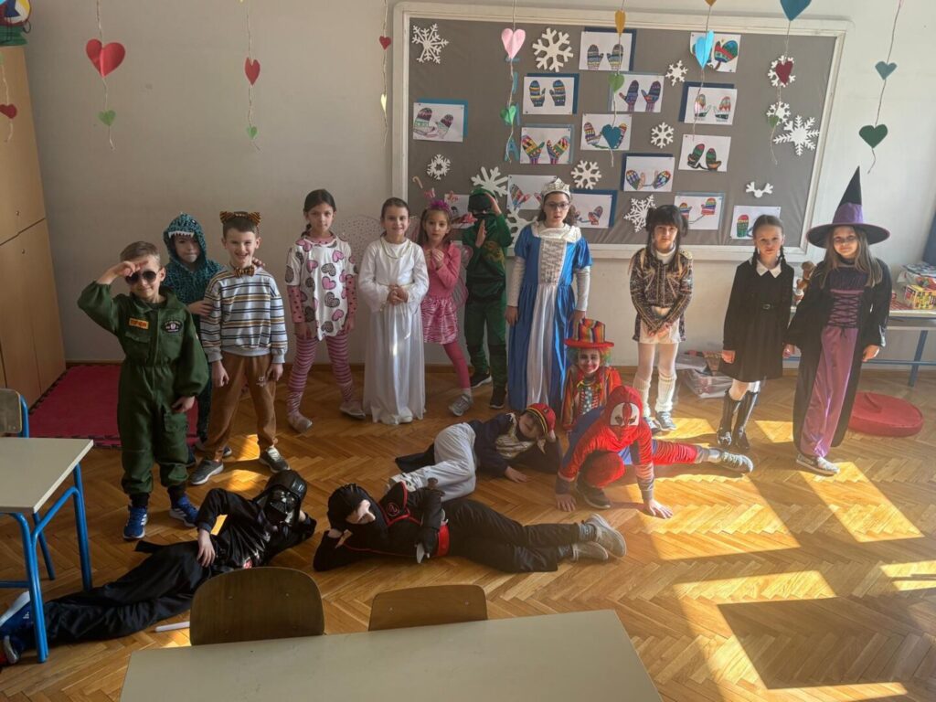 U utorak, 17. veljače naši su prvašići veselo proslavili Fašnik pretvorivši školu u svijet iz mašte. Hodnicima su zavladali likovi iz bajki, filmova i svakodnevnog života, a šarenilo kostima predstavljeno je u prigodnoj fašničkoj povorci. Uz pjesmu i druženje, učenici su obilazili učionice, a posebno su nas razveselile “bubamare” iz 1. B razreda koje su uz ples i pjesmu “Nije lako bubamarcu” oduševile sve prisutne. Bio je to dan ispunjen smijehom, zabavom i veseljem.