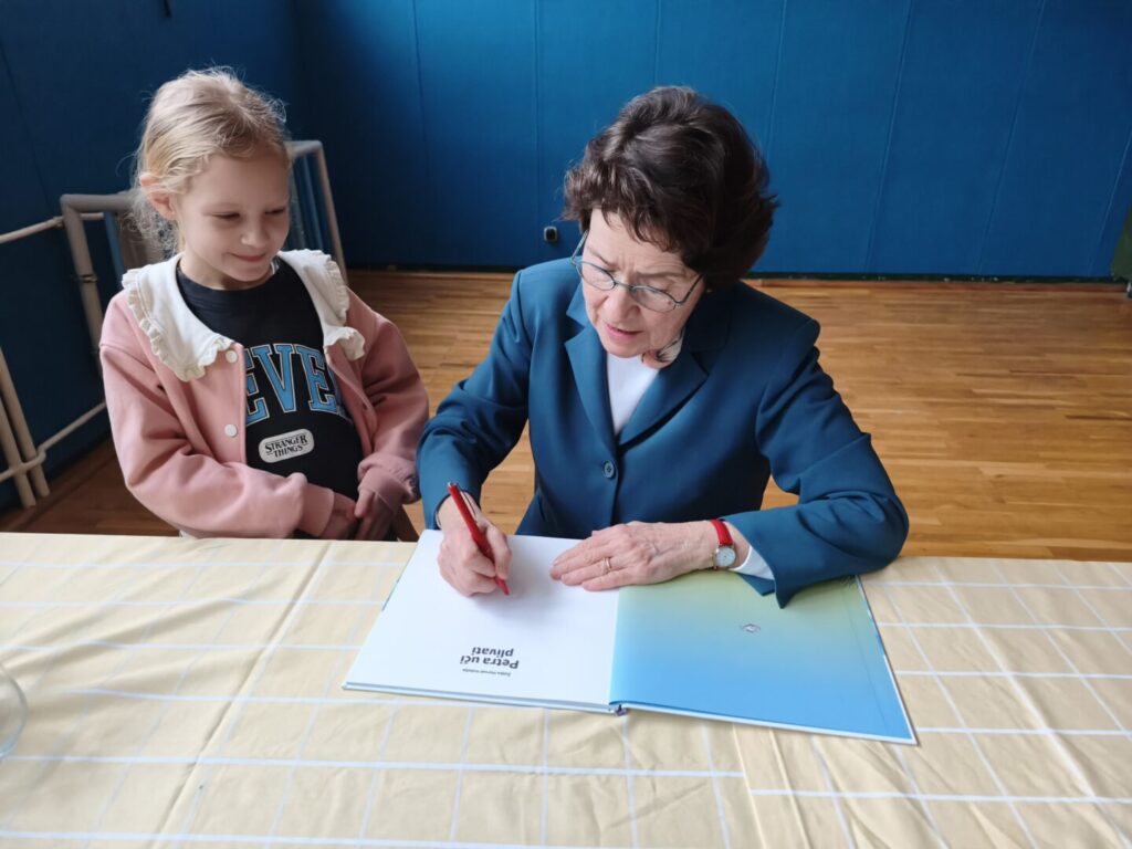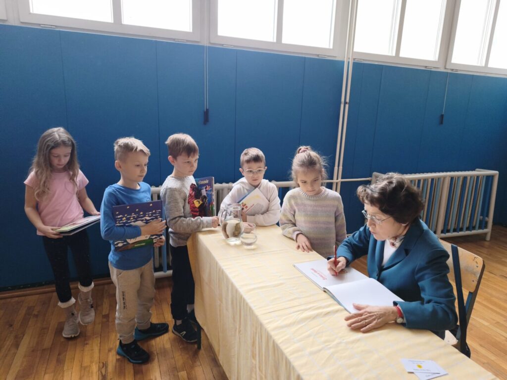 Učenici su uz autoricu aktivno sudjelovali u jedinstvenoj književno-scenskoj formi pričokaza te su osim slušanja priča glumili, pjevali i pljeskali na različite načine oponašajući životinje i predmete iz priča naše gošće. Svojom toplinom, maštom i razigranom energijom književnica je oduševila prvašiće, a mnogi od njih poželjeli su sa sobom ponijeti zagrljaj, lijepu riječ i autogram kao uspomenu na divan susret.