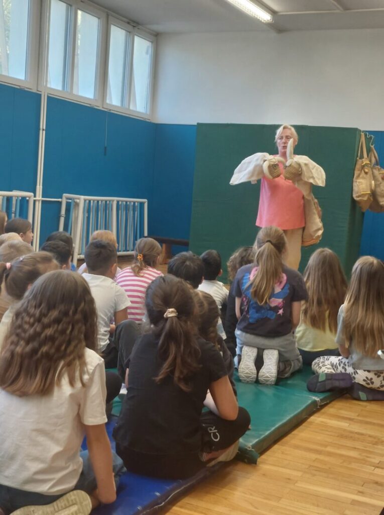 U goste im je stigla spisateljica i lutkarica Jadranka Čunčić Bandov koja im je na jedinstven način približila svijet igrokaza, lutaka i mašte. Umjesto klasičnog čitanja, književnica je za njih izvodila lutkarske igrokaze oživljavajući likove iz svojih igrokaza.