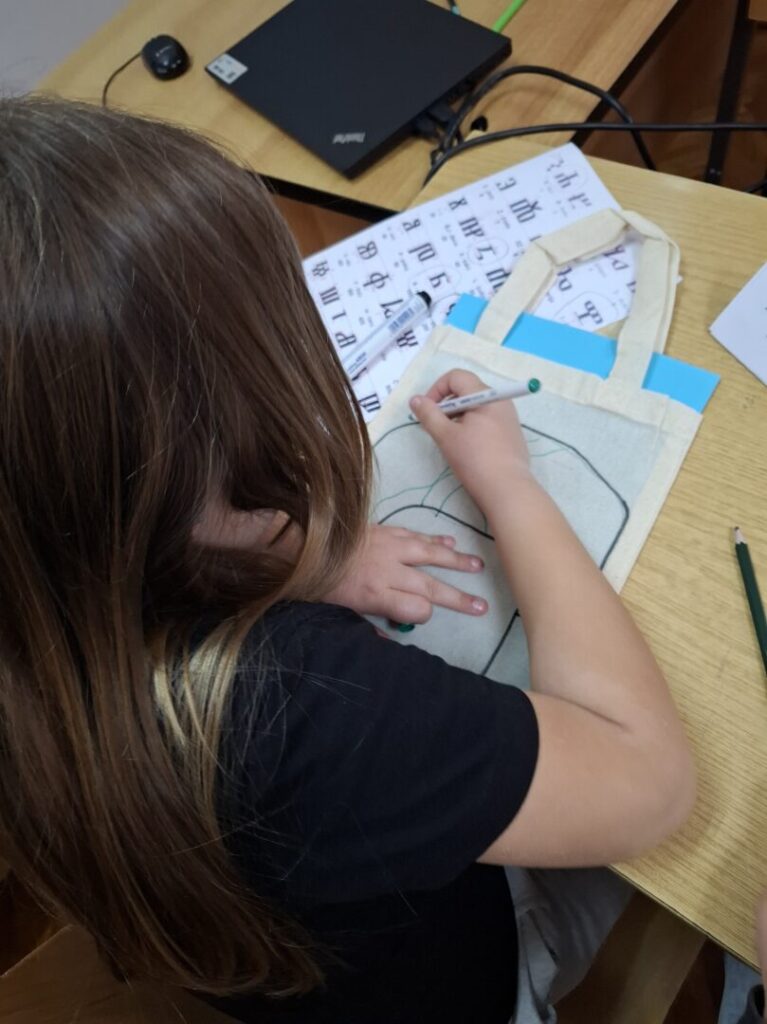 Radionica je održana 5. i 7. studenoga 2025. godine, a vodila ju je Dorotea Bačić Čmelar, viša stručna suradnica za programe kulturne baštine. Učenici su na platnenim vrećicama oslikavali najdraže slovo glagoljice i pisali svoje ime na glagoljici. Kao poklon, svaki učenik je dobio platnenu vrećicu s vlastitim imenom napisanim glagoljici.