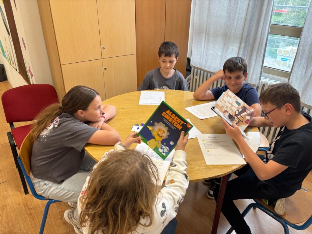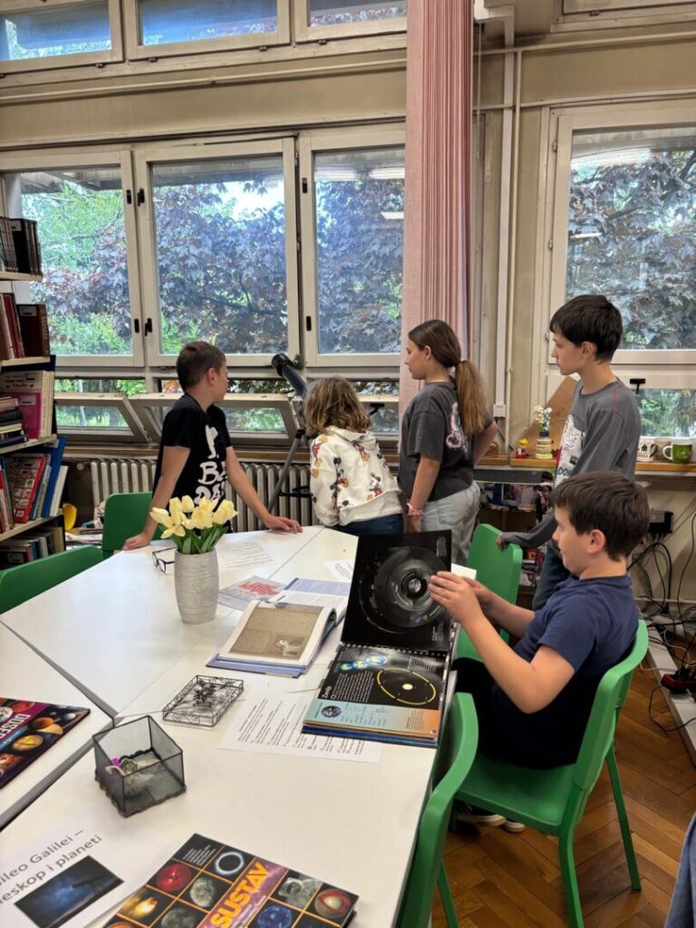 U radionici inspiriranoj Albertom Einsteinom učenici su istraživali svijet svjetlosti i optike kroz jednostavne pokuse savijanja svjetlosti, povezujući znanje s radom velikog znanstvenika. Druga radionica bila je posvećena Galileu Galileiju te pokusima kretanja i ravnoteže gdje su učenici kroz igru i eksperimente otkrivali osnovne fizikalne zakonitosti. Ujedno su imali priliku vidjeti teleskop te pomoću teleskopa proučavati okolinu knjižnice.
