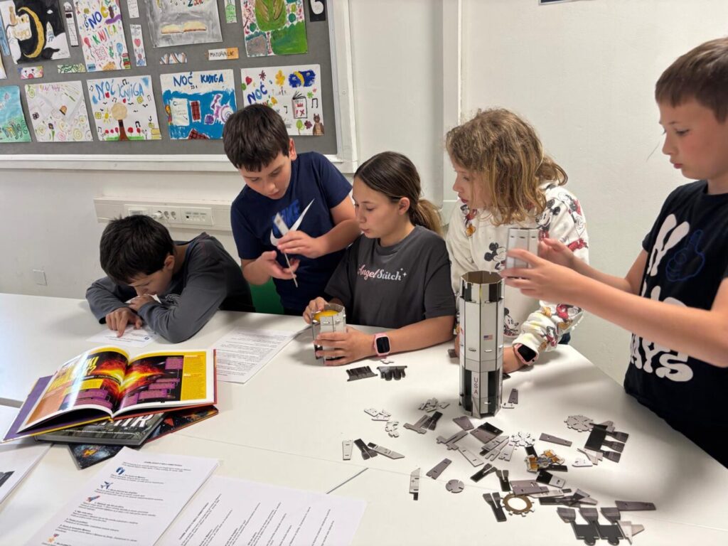 Treća radionica bavila se svemirom i istraživanjem Mjeseca, potičući znatiželju o svemirskim misijama i životu astronauta Neila Armstronga. Učenici su aktivno sudjelovali u simulacijama i razgovorima o izazovima boravka u svemiru, a posebno ih je zabavilo skupno sastavljanje rakete. U radionici posvećenoj Nikoli Tesli učenici su kroz pokuse upoznali osnovne principe elektriciteta i prijenosa energije.