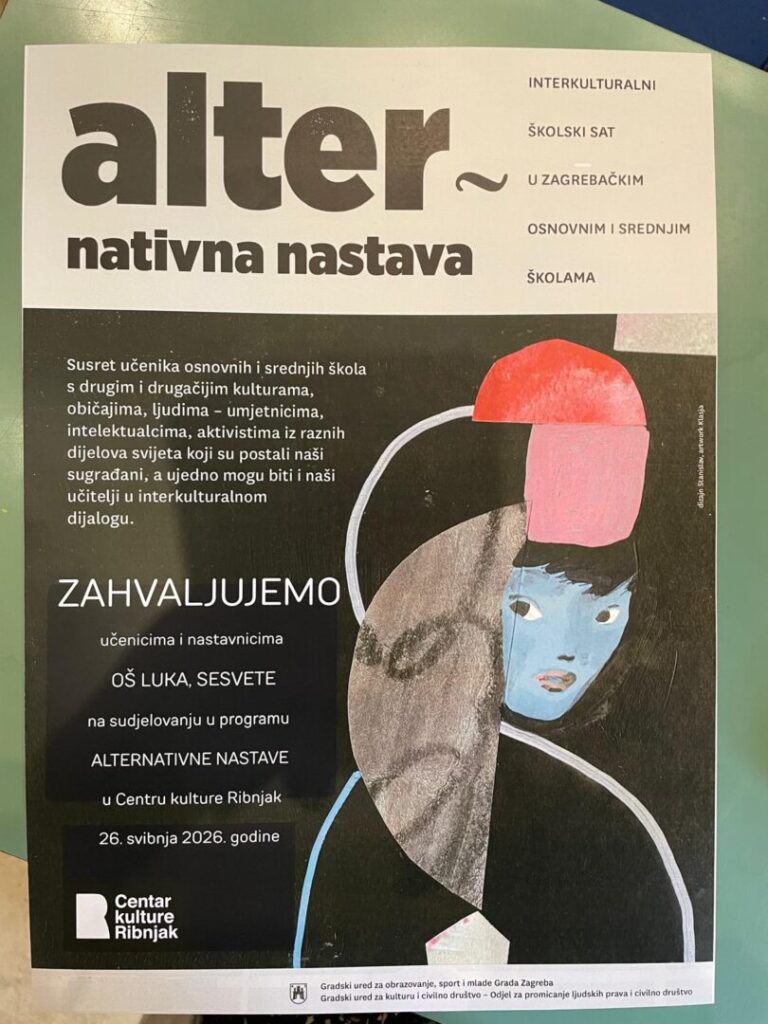Učenici petih razreda sa svojim su razrednicama Anom Ostojić, Romanom Sosa, Gordanom Grujić, Silvijom Kovačić i učiteljicom hrvatskoga jezika Davorkom Pekišić  26. ožujka 2026. sudjelovaali u alternativnoj i intekulturalnoj nastavi u Centru kulture Ribnjak.