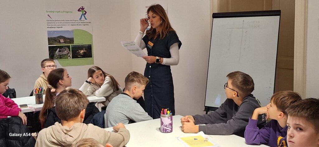 Kroz stoljeća, Prigorje je mijenjalo svoje lice- od prapovijesnih špilja i rimskih utvrda, preko srednjovjekovnih gradina i seljačkih buna pa sve do prvih škola i kulturnog preporoda u 19. stoljeću. Na radionici smo oživjeli ta vremena: zamišljali kako su ljudi gradili svoja naselja, branili svoje domove, radili na zemlji i učili u prvim učionicama. Na radionici smo imali priliku vidjeti predmete iz stalnog muzejskog postava: keltske i rimske novčiće, fibulu u obliku cvrčka (cikada) i razne nožiće.